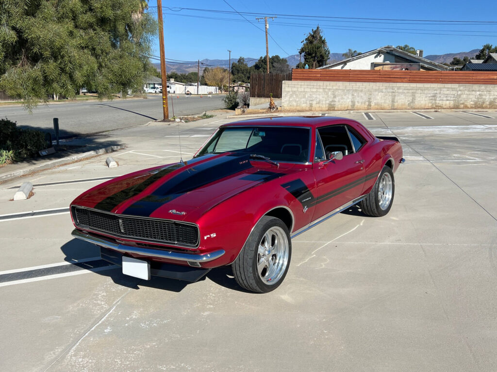 This is an older restoration that has held up very well, having been stored and covered indoors for the past 30 years. The original smog pump and related components remain under the hood since 1967, and there is no evidence the car has left the state. The headlight doors currently operate manually; an upgrade such as the Detroit Speed electric RS headlight door kit is recommended. The AM/FM stereo is functional, with front kick panel and rear speakers providing good sound for its age.