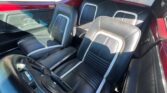 The black vinyl interior presents like new, featuring white accents, custom door panels, a refreshed dash, new headliner, and package tray with 6×9-inch speakers. The gauges are original and functional, with the exception of the tachometer.